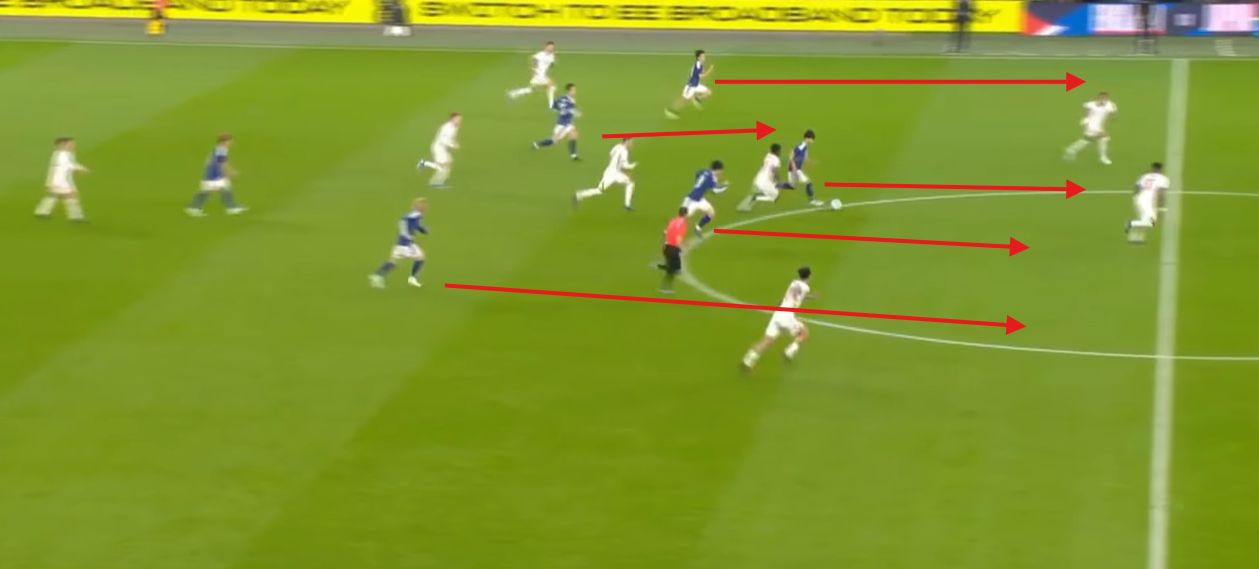 Ueda worked tirelessly on and off the ball, which may be going under the radar due to not grabbing the headlines like Mitoma. Firstly, if we look back on Figure 10, we can see that Ueda’s movement draws O’Reilly just enough for Mitoma to have space to score. Ueda uses his strength in movement to become a decoy, a selfless action in a beautiful team goal.